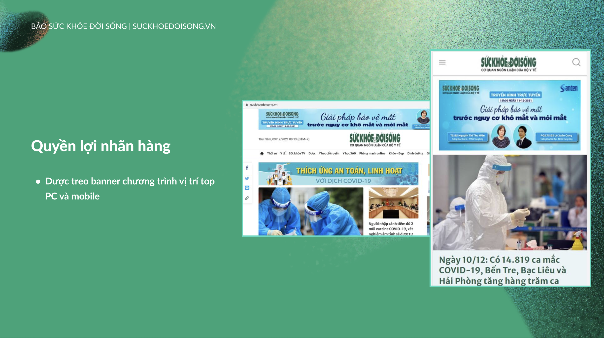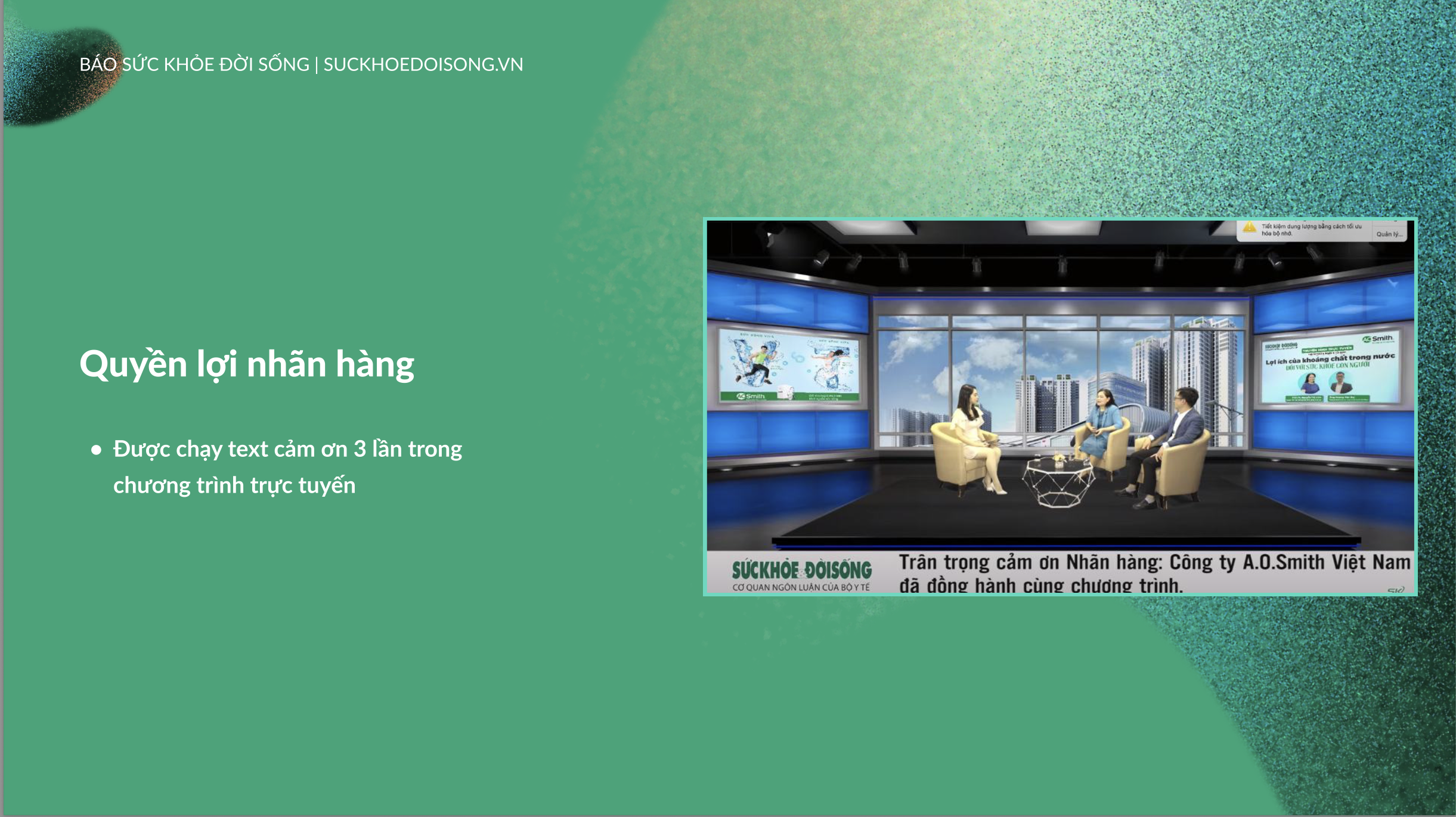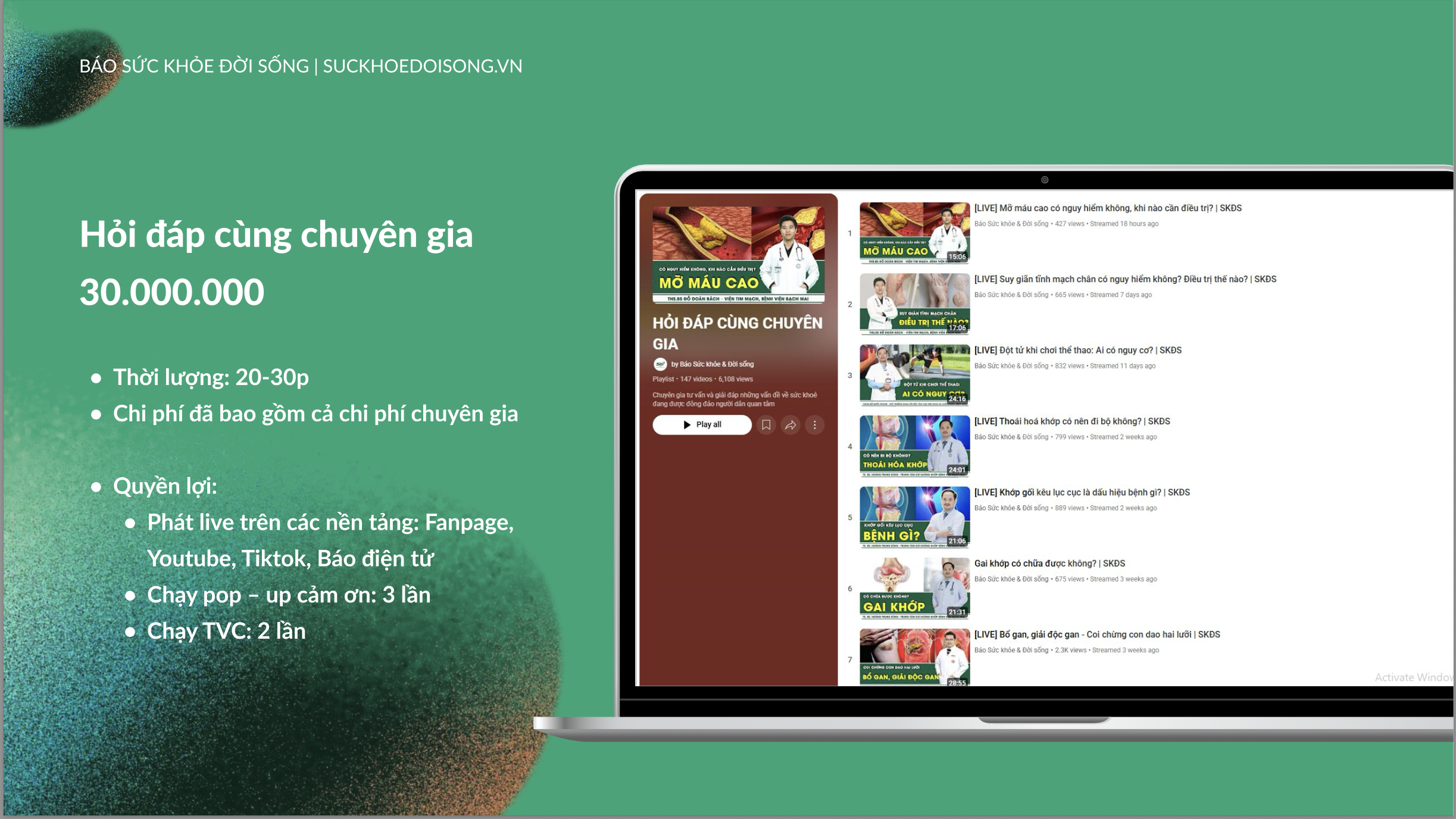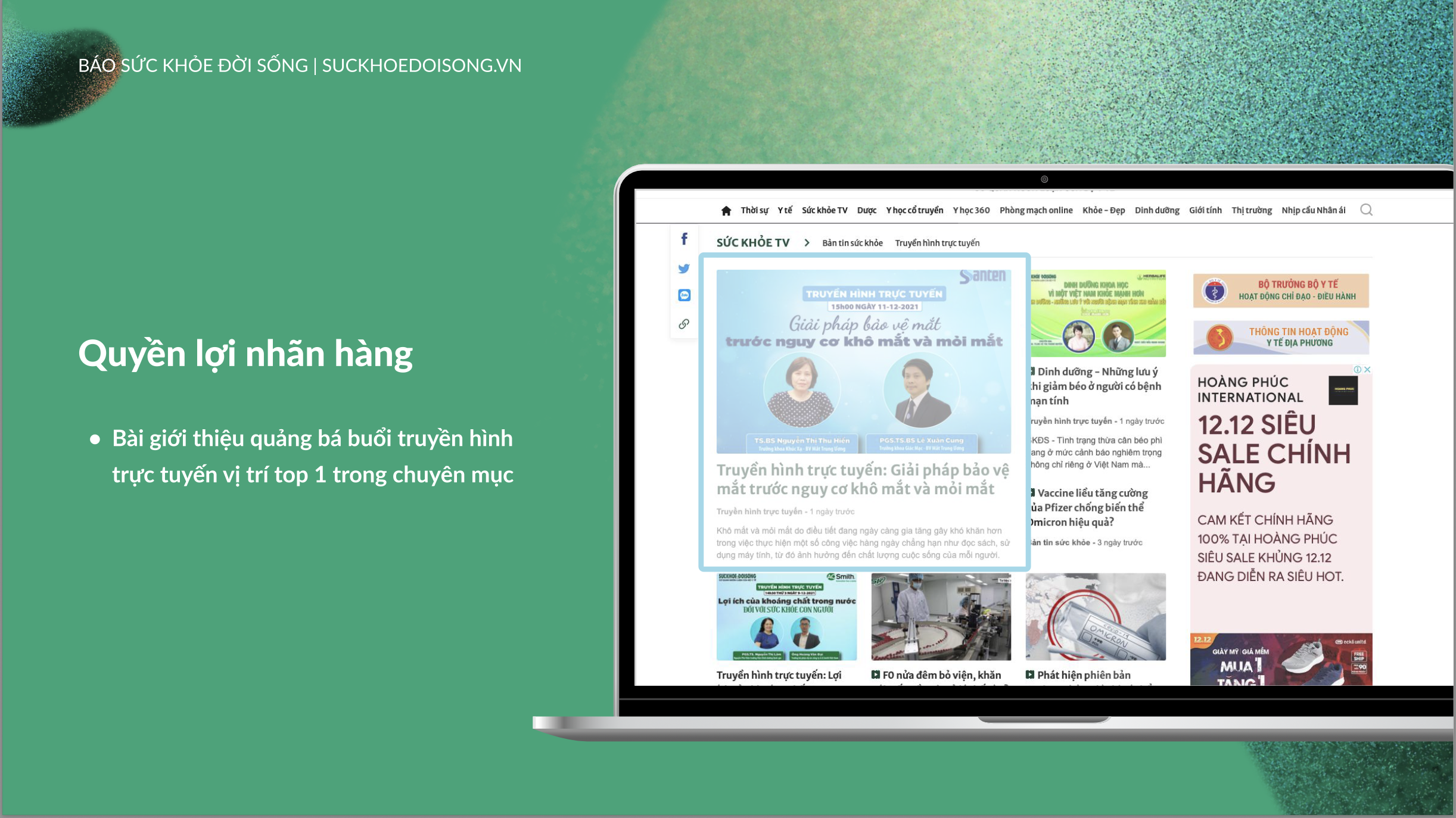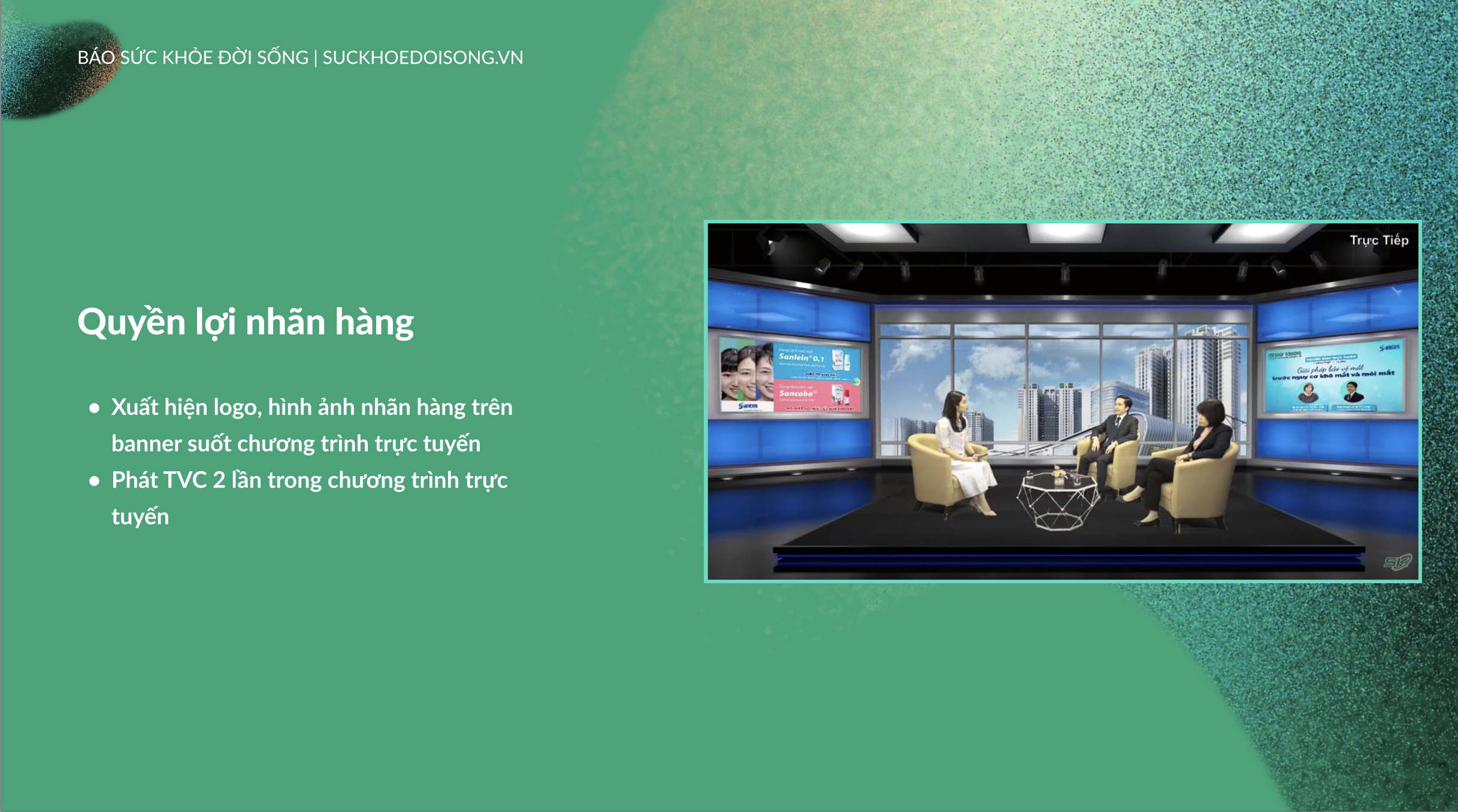 Tài trợ chuyên mục/Talkshow: Lồng ghép thương hiệu vào các chương trình tư vấn sức khỏe trực tuyến, gia tăng tương tác thực tế với người dùng.
