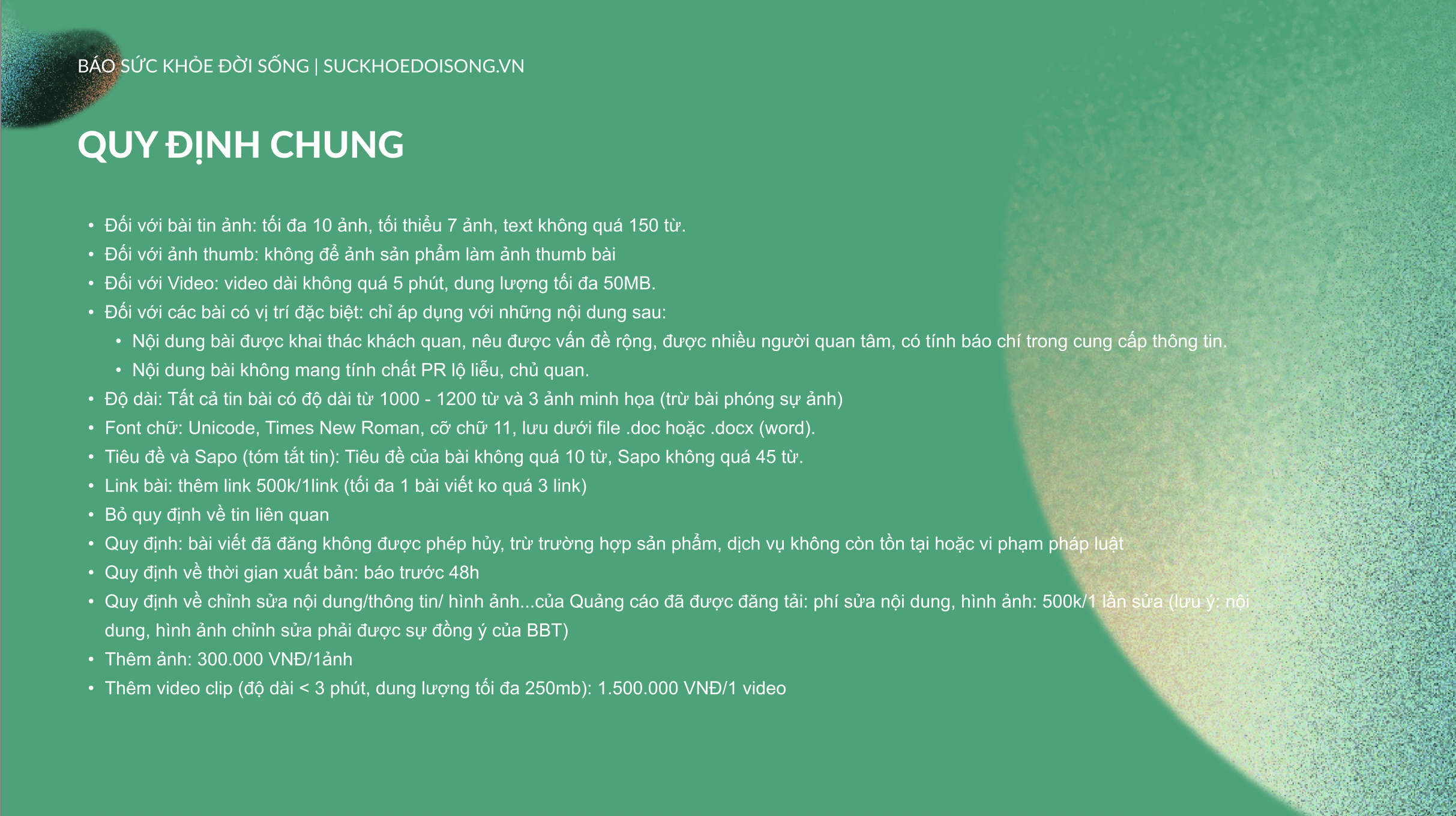 Chúng tôi xin thông báo bảng báo giá quảng cáo mới nhất trên Báo Sức khỏe và Đời sống sẽ chính thức có hiệu lực từ ngày 01/01/2026. Đây là cơ hội để các nhãn hàng lên kế hoạch truyền thông dài hạn với mức chi phí tối ưu và hiệu quả cao nhất.