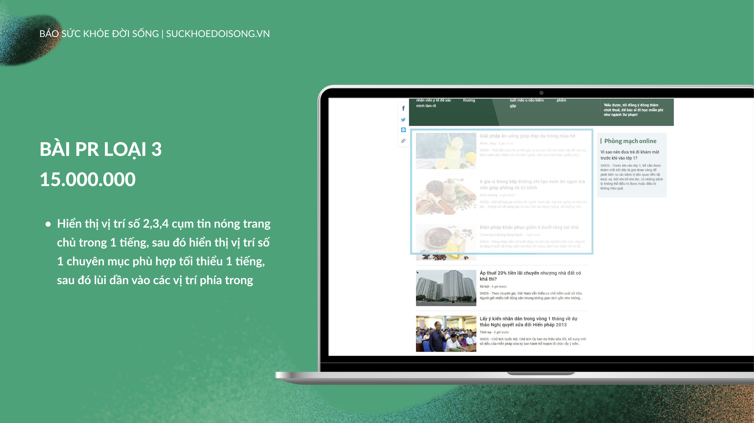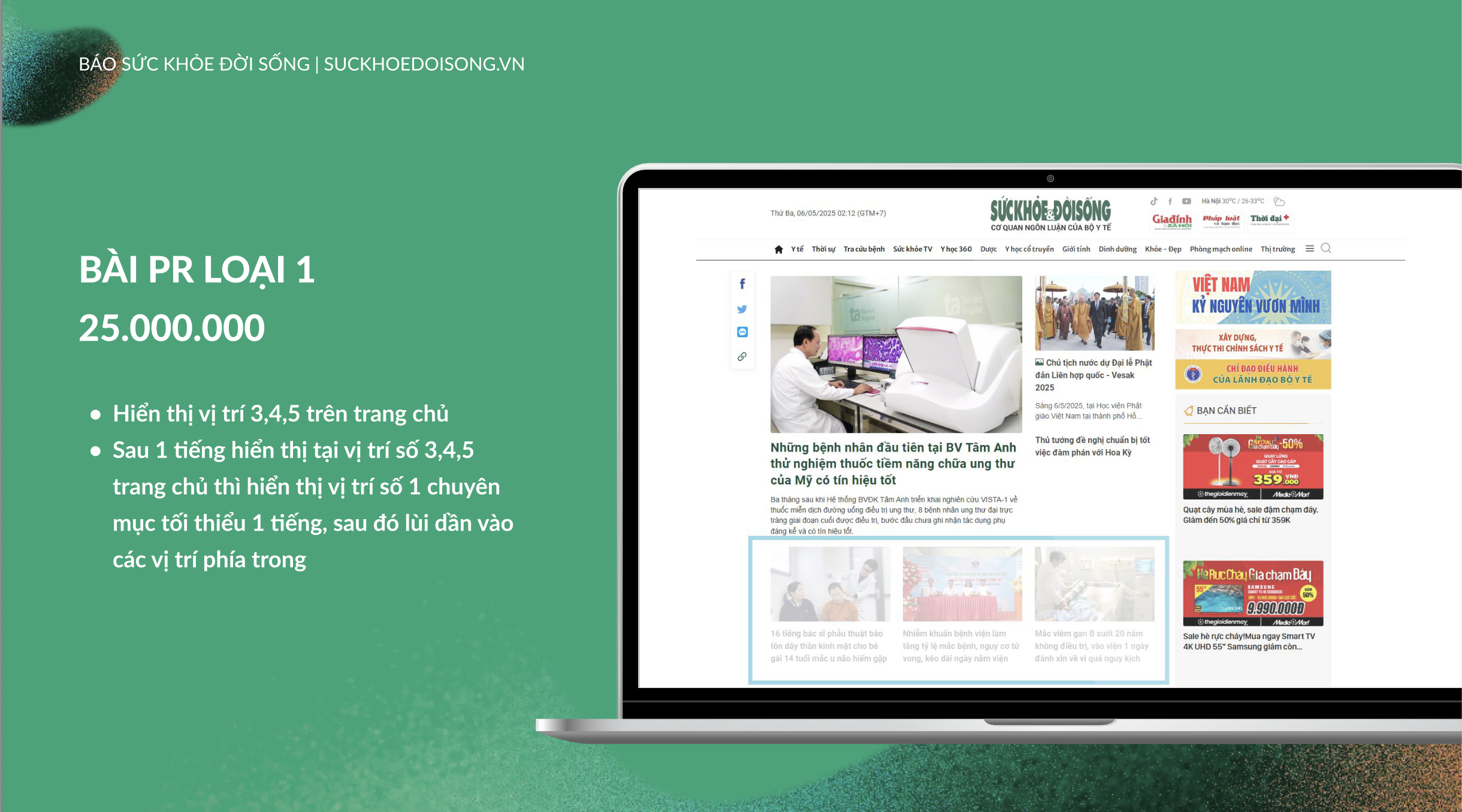 Đừng bỏ lỡ cơ hội đưa thương hiệu của bạn đến gần hơn với hàng triệu độc giả Việt Nam. Hãy liên hệ ngay để được tư vấn chiến lược booking quảng cáo hiệu quả nhất trên Báo Sức khỏe và Đời sống.