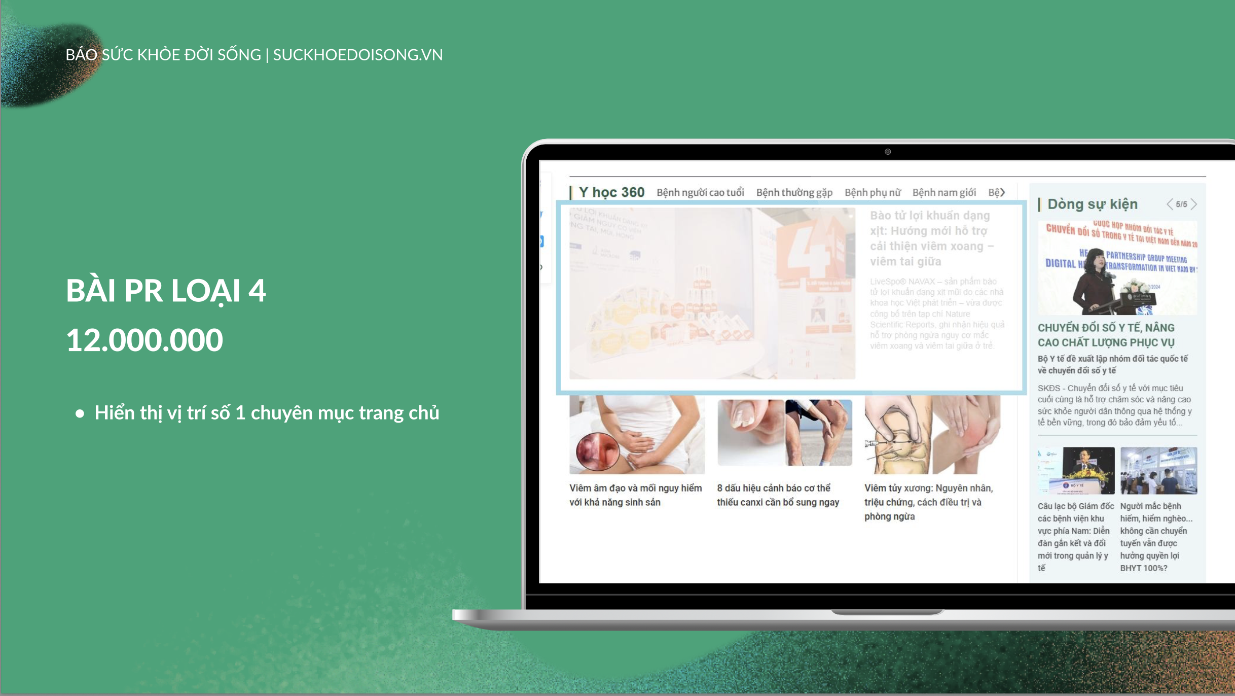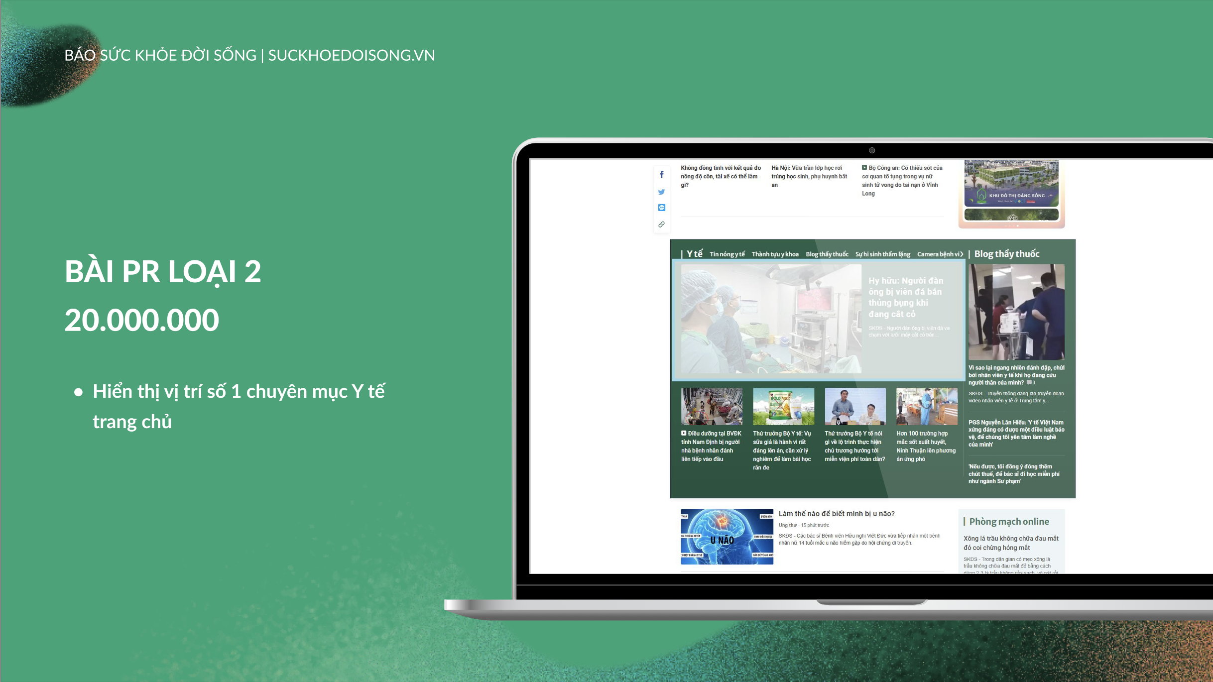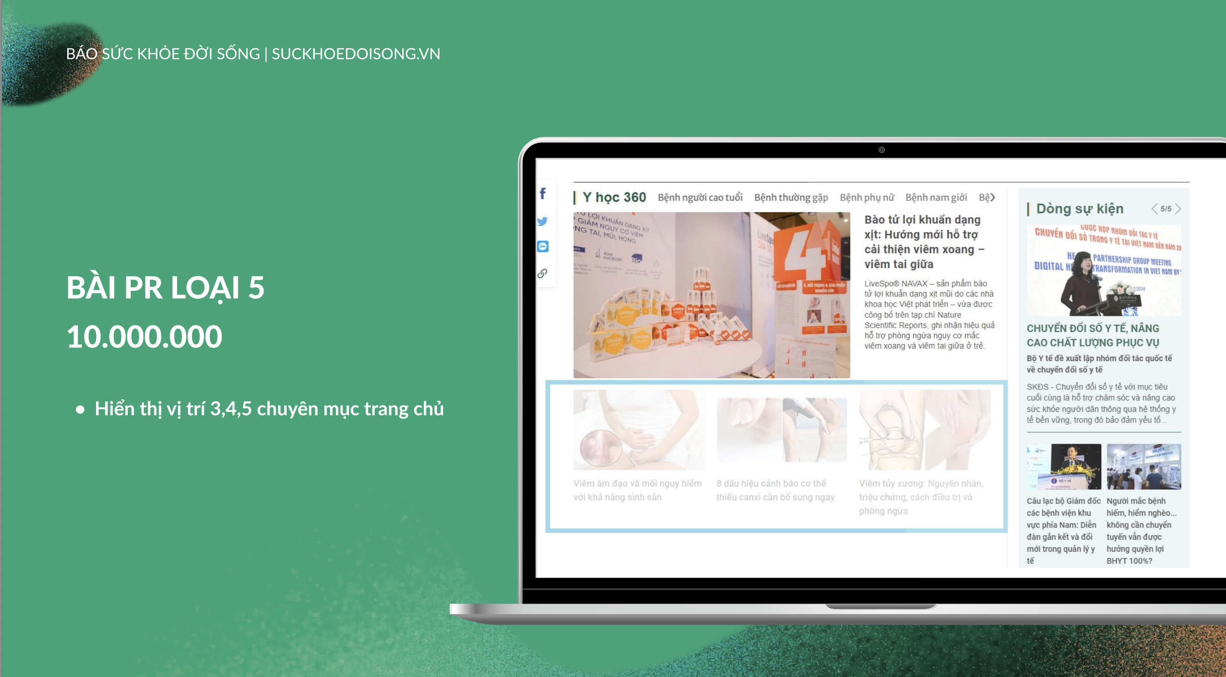 Bài viết PR chuyên sâu: Giới thiệu sản phẩm, dịch vụ, công nghệ y tế mới gắn liền với tư vấn từ chuyên gia.