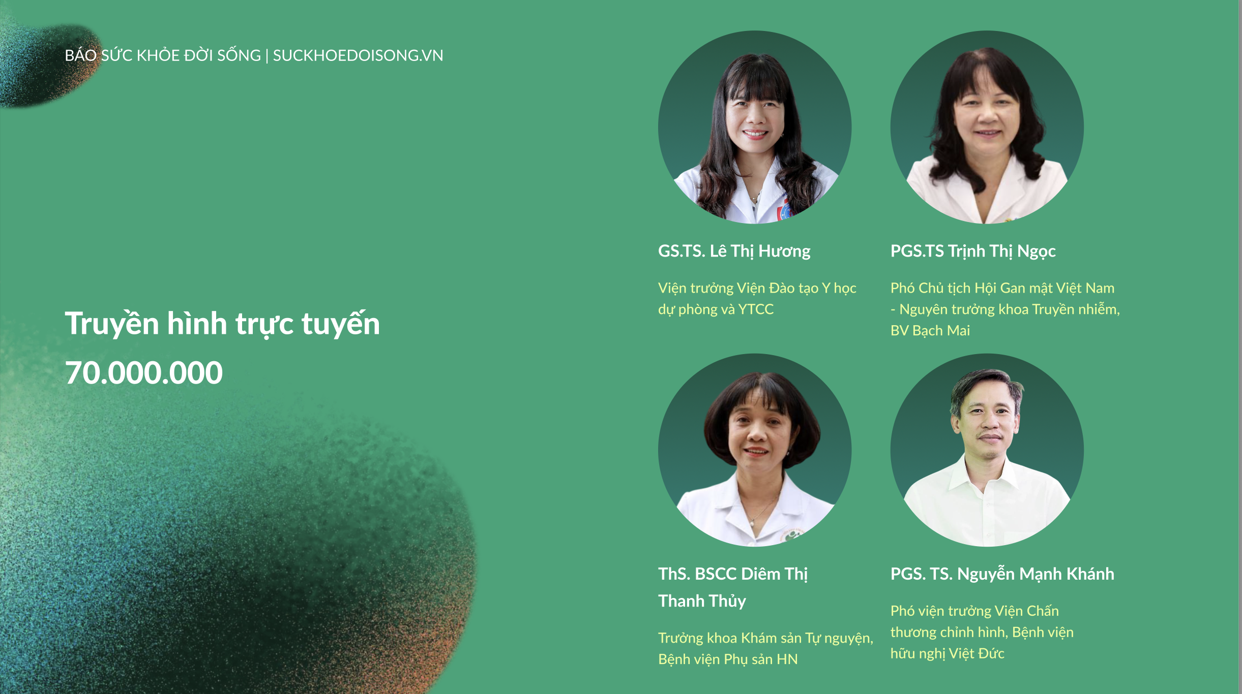 Nội dung chuyên sâu & đa dạng: Từ tin tức thời sự, tư vấn dinh dưỡng, Sức khỏe TV, Y học 360 đến các Talkshow trực tuyến với sự tham gia của các giáo sư, bác sĩ đầu ngành.